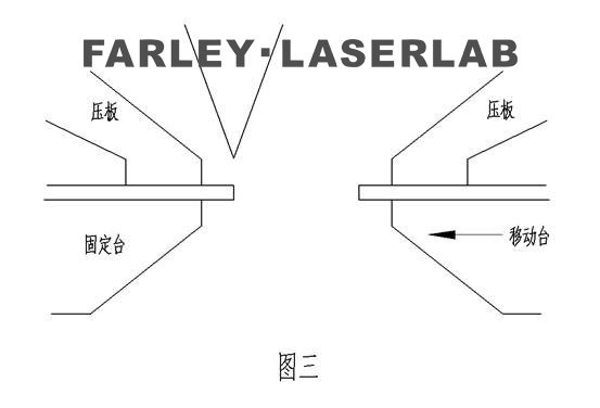 這里介紹一種拼焊的定位、裝夾的方法和結(jié)構(gòu)。如圖三所示,華工激光法利萊薄板的裝夾主要由工作臺和壓板來完成,一邊為固定的工作臺,另一邊為活動,經(jīng)過手動或者自動粗定位之后,壓板通手動或者氣動加緊之后,用激光分別對兩邊的工件邊緣進(jìn)行切割,然后移動臺向固定臺移動,完成拼縫,在固定臺一側(cè)完成激光焊接。
