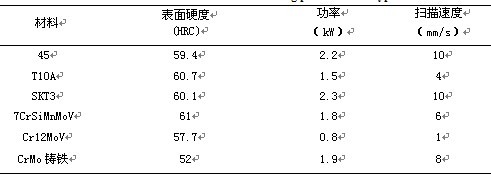 Table1 The surface hardness and the laser hardening parameters of typical materials