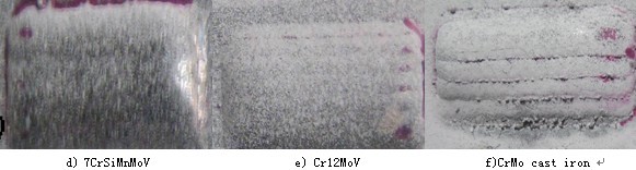 圖9所示,軋輥材料為中NiCr,經(jīng)激光合金化后,表面硬度可達(dá)HV900-950,合金化層深度約為0.5-0.7mm,表面粗糙度為Ra2~3μm,使用壽命提高1-2倍。