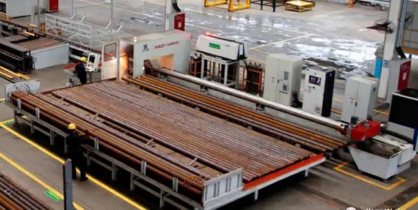 三一生產車間現(xiàn)場為了改進生產工藝、提升生產效率,2009年三一全面引進華工激光設備,首批就采購了12臺等離子切割設備和7臺激光切割設備,同時建立激光數(shù)控切管生產線,實現(xiàn)鋼管材料從上料、輸送、定長、切割、下料等全過程的自動化,極大的提高了生產效率,這也是三一首條激光數(shù)控切管生產線。
