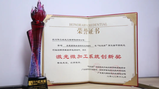 12月18日,第五屆“紅光獎(jiǎng)“頒獎(jiǎng)典禮在深圳順利舉行,獎(jiǎng)項(xiàng)由中國(guó)激光行業(yè)創(chuàng)新貢獻(xiàn)獎(jiǎng)組委會(huì)、激光制造網(wǎng)聯(lián)合業(yè)界權(quán)威專家及國(guó)內(nèi)多家激光行業(yè)協(xié)會(huì)、激光學(xué)會(huì)、激光產(chǎn)業(yè)聯(lián)盟共同打造,華工激光車(chē)載攝像頭焊接智能裝備獲得“激光微加工系統(tǒng)創(chuàng)新獎(jiǎng)”。