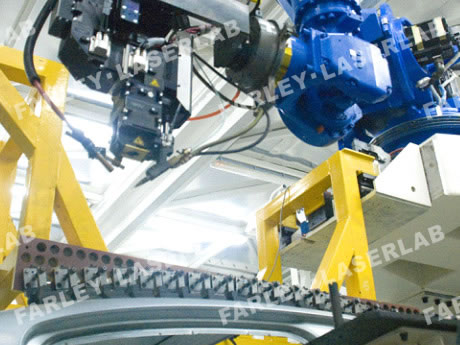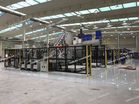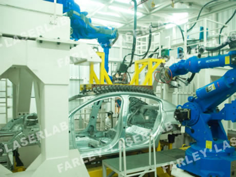 FARLEY?LASERLAB法利萊的“汽車白車身激光焊接系統(tǒng)”加工精度高、質(zhì)量穩(wěn)定,四種車型自動識別,自動抓取對應夾具并調(diào)用相關程序進行加工,實現(xiàn)白車身快速定位、激光釬焊、焊接與搬運工業(yè)機器人應用等技術(shù)融為一體,焊接速度可達4.8米/分鐘,比全球同類型設備快30%。