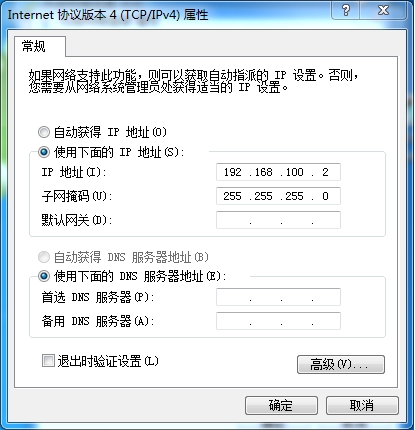 則需要更改計算機IP為 192.168.100.2,子網(wǎng)掩碼默認