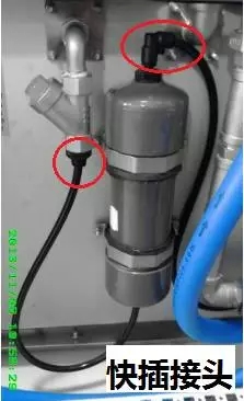 3、將去離子桶的上下兩個快插水管拆下來后,使用<0.4MPa壓縮氣體從上至下吹一下,將去離子桶內(nèi)的殘水吹出。然后再將上下快插水管接回去離子桶。這樣基本可以保證去離子桶不會因為結(jié)冰而凍裂。
