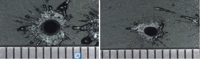 其特點是相對炸孔雖然時間稍長(3秒),但穿出的孔徑小(約φ4mm)且開孔邊緣無附著物以及入熱較低,便于接下來的正常切割加工,相比普通穿孔則效率提高了4倍。