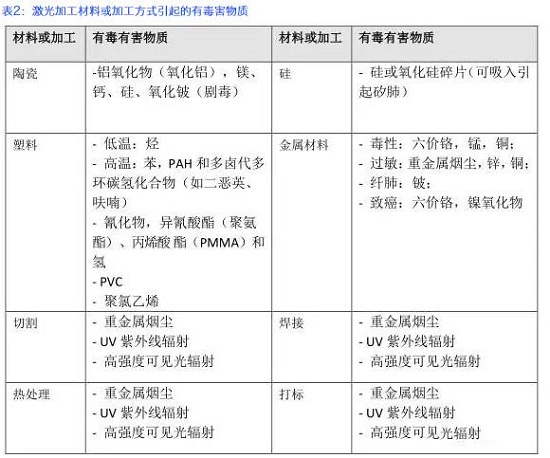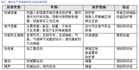 激光沒有大家想的那么可怕,但是也有一些危害,尤對激光切割機(jī)、激光焊接機(jī)等功率較大的設(shè)備。下表中(表1、表2)是根據(jù)ISO 11553-1 《激光加工設(shè)備—通用安全要求》列舉的一些激光危害。