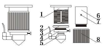 1.聚焦鏡內(nèi)筒2.進氣管3.限位螺圈4.氣嘴過渡套5.氣嘴6.鏡筒7.限位螺絲8.調(diào)節(jié)套筒.