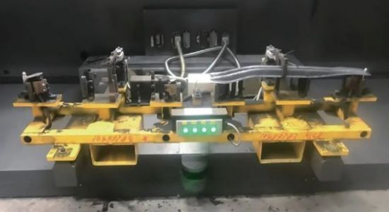 ⑴落料片的生產(chǎn)。落料片是在開卷落料線上生產(chǎn)出來特定輪廓的料片,然后將其運送至熱成形線,由機(jī)器人通過真空吸盤將落料片送至打碼機(jī)打碼之后,放至輸送線上傳送至加熱爐。