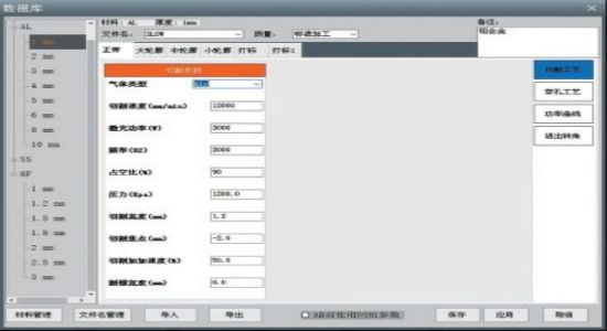 切割三維工件時并不一直是直線切割,在切割過程中會有大量的拐角、凸起或變向,機(jī)床的實際運行速度是在不斷變化的。為此,我們采集了實時路徑速度、激光器功率、頻率、占空比等參數(shù)數(shù)據(jù),根據(jù)其變化匹配出的最佳切割參數(shù),找其相對應(yīng)的函數(shù)關(guān)系,實現(xiàn)輸出變量將時刻變化的參數(shù)揉到機(jī)床的運動中,實現(xiàn)效率不減,切割質(zhì)量上升,或者效率略降,切割質(zhì)量提升。將該公式寫入系統(tǒng)程序中,通過人機(jī)交互界面直接激活功能即可使用。