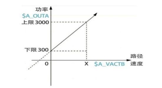 以3000W激光器為例,激光器最大功率3000W,因此功率輸出上限值為3000,在穿孔或者速度為0時,激光器輸出功率依舊能切割材料,設(shè)定此時輸出功率300W,即輸出功率下限值,設(shè)定機(jī)床加工速度X,實際加工路徑速度X1,那么:a0=(300-0)×1=300,a1=(3000-300)/(X-0)=2700/X,a2=a3=0(此 圖 無 二次項和三次項),所以Y=300+(2700/X)×X1,可簡化成Y=a0+a1×X。