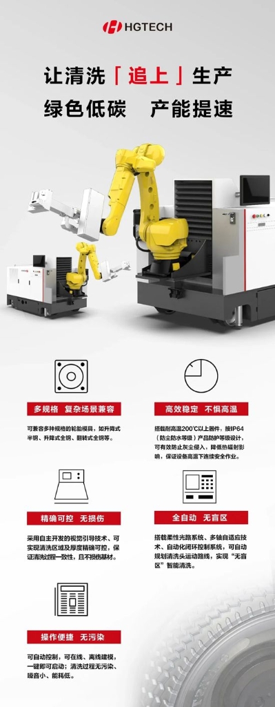 華工科技自主研發(fā)的“輪胎模具激光清洗智能裝備”攻克了激光器、清洗頭、視覺引導(dǎo)技術(shù)等多項(xiàng)核心部件與工藝,無懼高溫“烤驗(yàn)”,“不拆?!币材茏屛酃敢粧叨猓羁?5分鐘即可在線清洗一副輪胎模具,可有效解決傳統(tǒng)清洗方式中“待機(jī)時(shí)間長(zhǎng)、反復(fù)拆卸、模具磨損、清洗不徹底、環(huán)境污染、能耗高”等痛點(diǎn)、難點(diǎn)問題,從而減少硫化機(jī)停機(jī)時(shí)間,提高生產(chǎn)效率及輪胎質(zhì)量,開啟了輪胎模具清洗“低碳、自動(dòng)化”新時(shí)代。