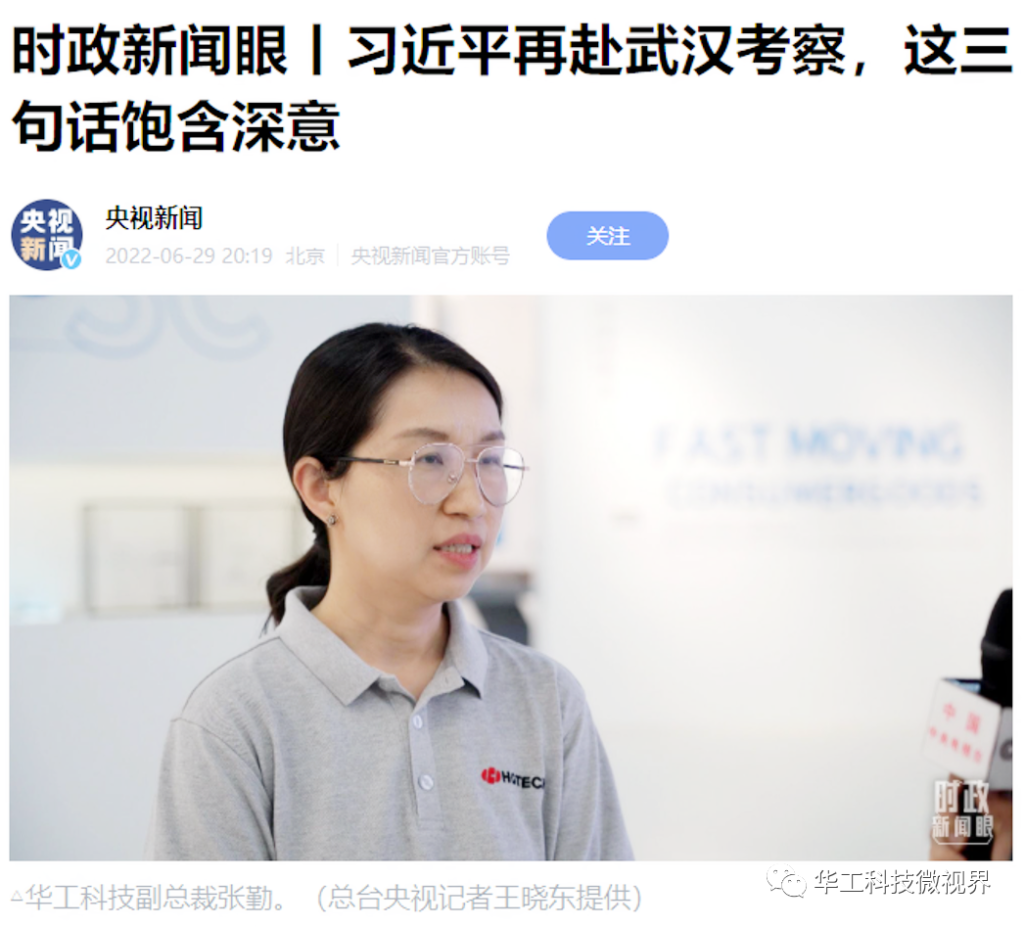 6月28日,習(xí)近平總書記在湖北省委書記王蒙徽、省長(zhǎng)王忠林陪同下,來(lái)到華工科技子公司武漢華工激光工程有限公司考察,在公司全體員工中引發(fā)熱烈反響,大家紛紛表示:“將深入踐行習(xí)近平總書記考察時(shí)的重要講話精神,踔厲奮發(fā),為實(shí)現(xiàn)科技自立自強(qiáng)貢獻(xiàn)力量”。人民日?qǐng)?bào)、央視新聞聯(lián)播、央視新聞、湖北日?qǐng)?bào)、湖北電視臺(tái)、長(zhǎng)江日?qǐng)?bào)等多家主流媒體對(duì)華工科技展開回訪,并進(jìn)行了全方位、多視角報(bào)道。