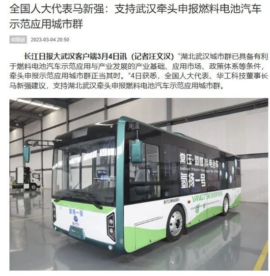 15 全國(guó)人大代表馬新強(qiáng):支持武漢牽頭申報(bào)燃料電池汽車(chē)示范應(yīng)用城市群