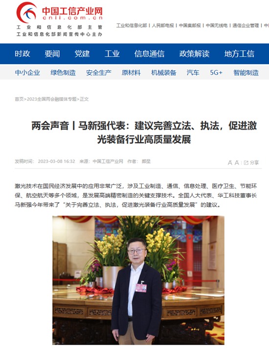 10 兩會(huì)聲音丨馬新強(qiáng)代表:建議完善立法、執(zhí)法,促進(jìn)激光裝備行業(yè)高質(zhì)量發(fā)展