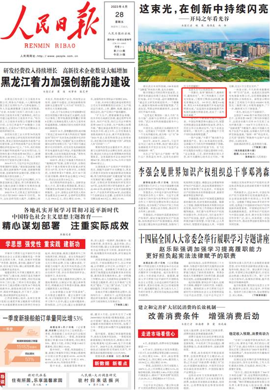 《人民日?qǐng)?bào)》在頭版報(bào)眼、重要版面連續(xù)兩天關(guān)注華工科技牢記囑托,創(chuàng)新圖強(qiáng)歷程。
