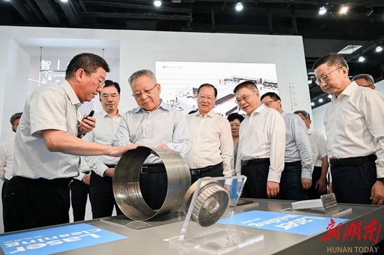 期間,沈曉明一行來到華工科技智能制造產(chǎn)業(yè)園未來城園區(qū),詳細了解了激光技術在國民經(jīng)濟重點領域中的應用,聽取了公司業(yè)務發(fā)展、與湘企協(xié)同創(chuàng)新的情況匯報。
