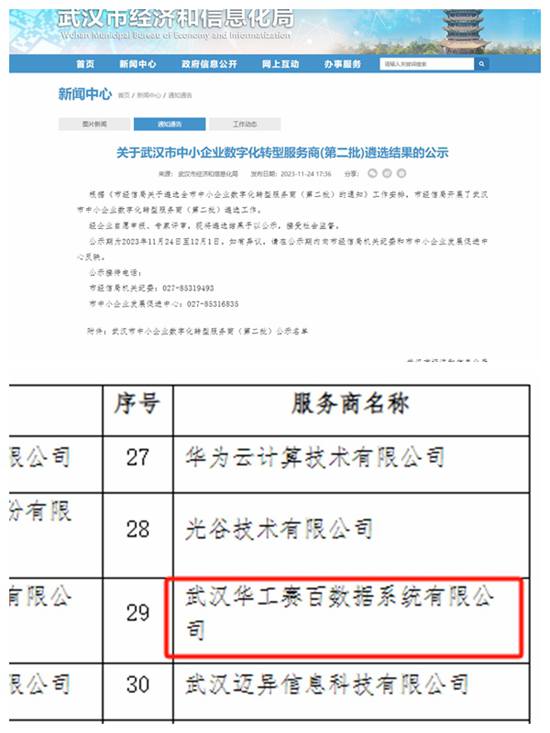 華工賽百入選“武漢市中小企業(yè)數(shù)字化轉(zhuǎn)型服務(wù)商”專業(yè)軟件服務(wù)商推薦名單