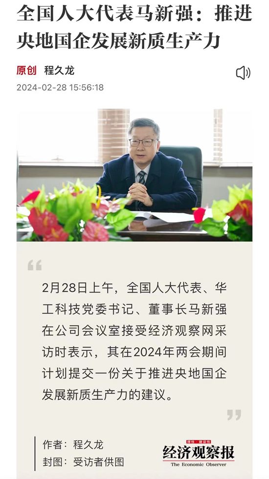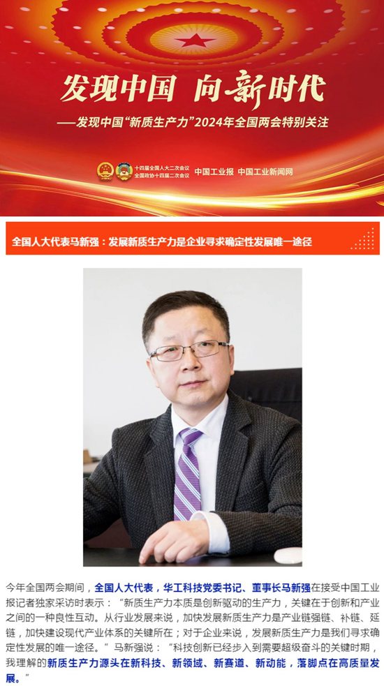 人民日?qǐng)?bào)、新華社、中央電視臺(tái)、經(jīng)濟(jì)日?qǐng)?bào)、科技日?qǐng)?bào)、新華網(wǎng)、工業(yè)和信息化部宣傳中心、人民郵電報(bào)、中國(guó)工業(yè)報(bào)、中國(guó)經(jīng)濟(jì)網(wǎng)、證券時(shí)報(bào)、證券日?qǐng)?bào)、上海證券報(bào)、21世紀(jì)經(jīng)濟(jì)報(bào)、經(jīng)濟(jì)觀察報(bào)、湖北日?qǐng)?bào)、極目新聞、長(zhǎng)江日?qǐng)?bào)等多家媒體關(guān)注馬新強(qiáng)代表的履職情況及華工科技創(chuàng)新發(fā)展。