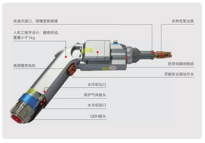 ● 內(nèi)部設計靈巧,良好的交互控制系統(tǒng),擴大了加工部件公差范圍及焊縫寬度,解決了光斑細小的劣勢,焊縫成形更好;