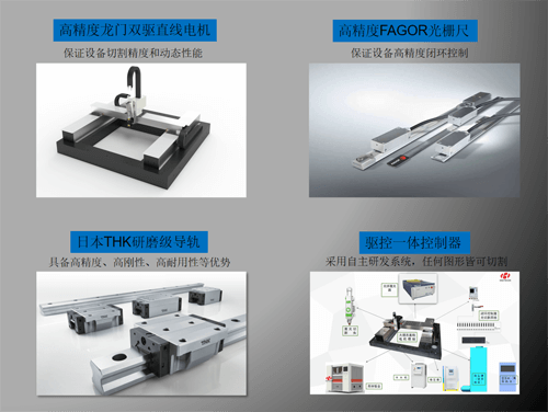 全閉環(huán)一體式控制,配備高精度的龍門雙驅直線電機、FAGOR光柵尺、日本THK研磨級導軌、驅控一體控制器等組件,構建整套高精密傳控系統(tǒng),極大的提高了設備性能。