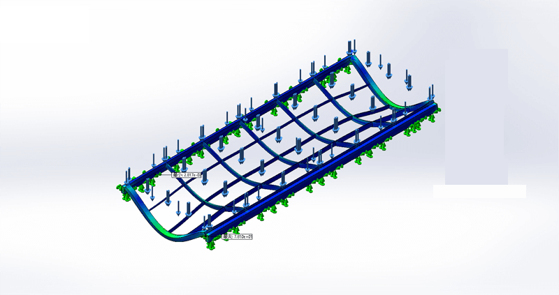 床身結(jié)構(gòu)剛性運(yùn)用有限元分析設(shè)計和整體板焊接時效工藝,有效確保設(shè)備長期穩(wěn)定運(yùn)行