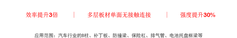 在確保焊接的精確性前提下,焊接綜合效率顯著提升3倍以上,同時(shí)強(qiáng)度提升30%,有效提升車身扭轉(zhuǎn)剛性。